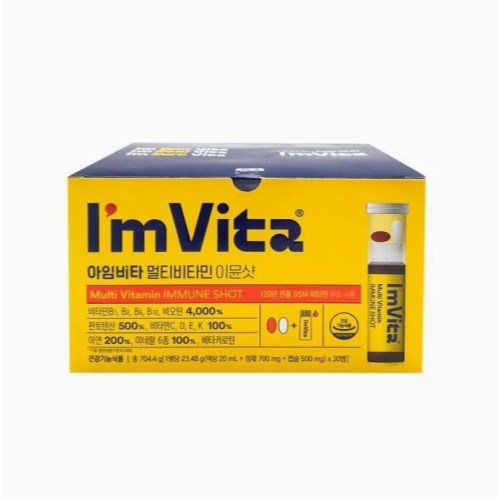 종근당건강 아임비타 이뮨 샷은 간편하게 마시는 액상형 멀티비타민으로, 아연, 나이아신, 셀렌, 비타민A 등 다양한 성분을 포함하여 면역력 증진, 항산화, 눈 건강 등 여러 기능을 한 번에 챙길 수 있습니다.